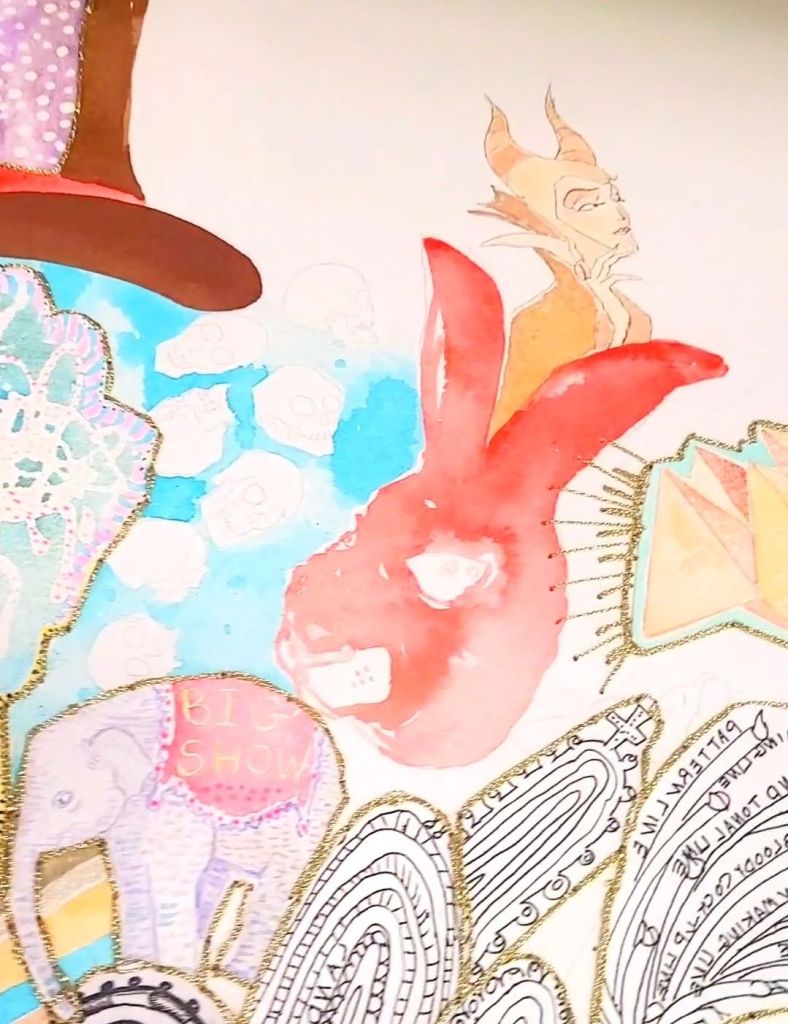 Umbrella Art Gallery Highly Commended distinction award, June 2024. Watercolour, acid etching, and hand stitched gold fibre 60 x 85 cm