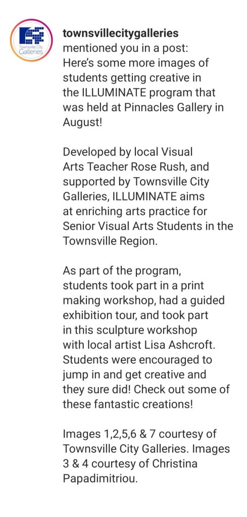2020 Head Space Townsville commissioned Art Therapist. Twelve week workshop facilitator tutororing 25 young people and adults with mental ill-health as part of a ADF families project funded by Compass
